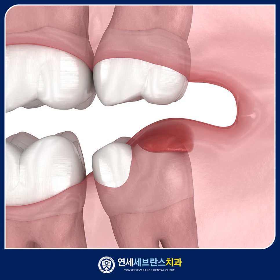 매복 사랑니처럼 잇몸 속에 완전히 또는 일부만 묻혀 있으면 겉으로 드러나지 않아도 염증이 반복되는 경우가 있습니다.